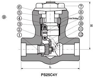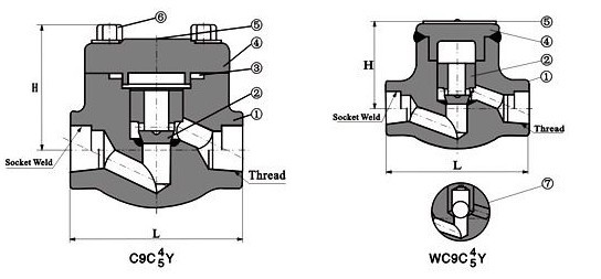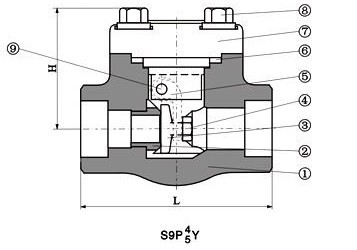 H61W鍛鋼焊接止回閥結(jié)構(gòu)圖
