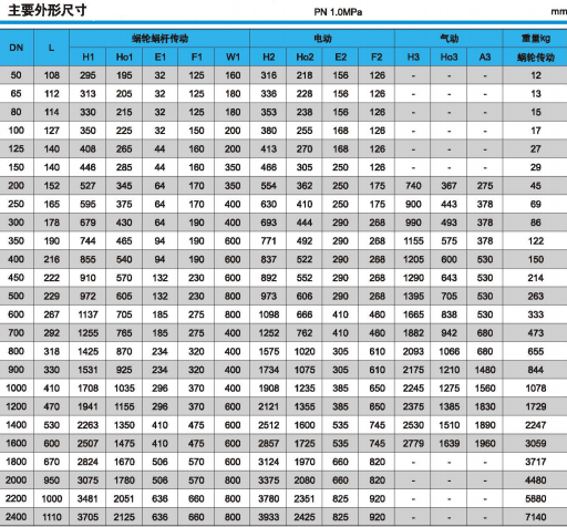 下列圖中的閥門結(jié)構(gòu)長度:DN<2000按ISO5752的13系列;DN≥2000按ISO5752的41系列。