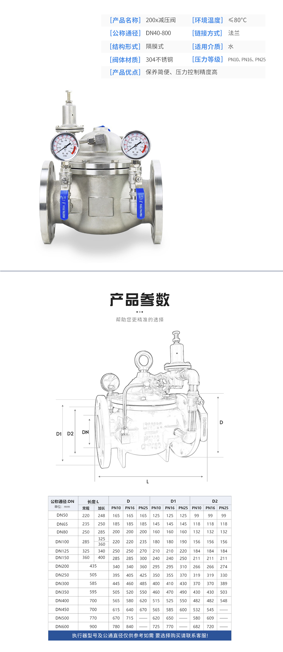 不銹鋼可調式減壓閥自來水200X-16P 先導式法蘭消防水力控制閥門
