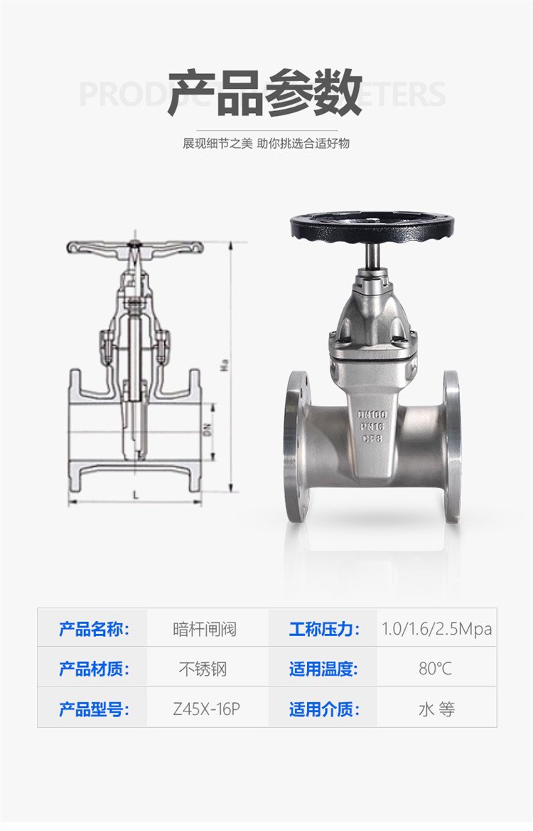 不銹鋼軟密封暗桿閘閥Z45X-16P